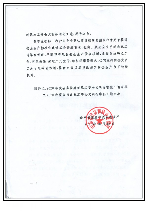 2020年度省房屋建筑施工安全文明标准化工地-尊龙凯时人生就搏建设集团有限公司官网