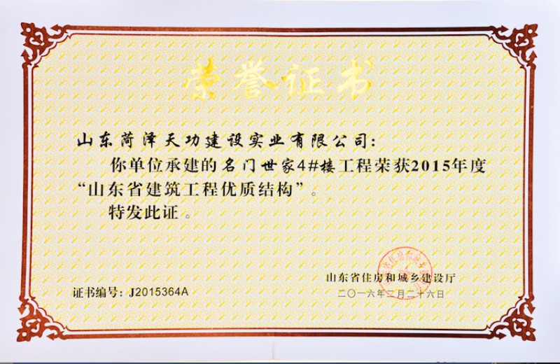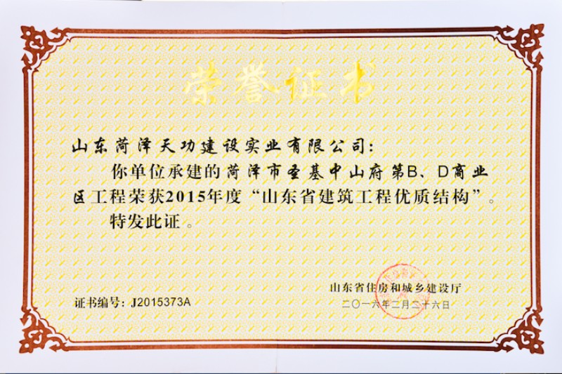 山东省优质结构杯-尊龙凯时人生就搏建设集团有限公司官网