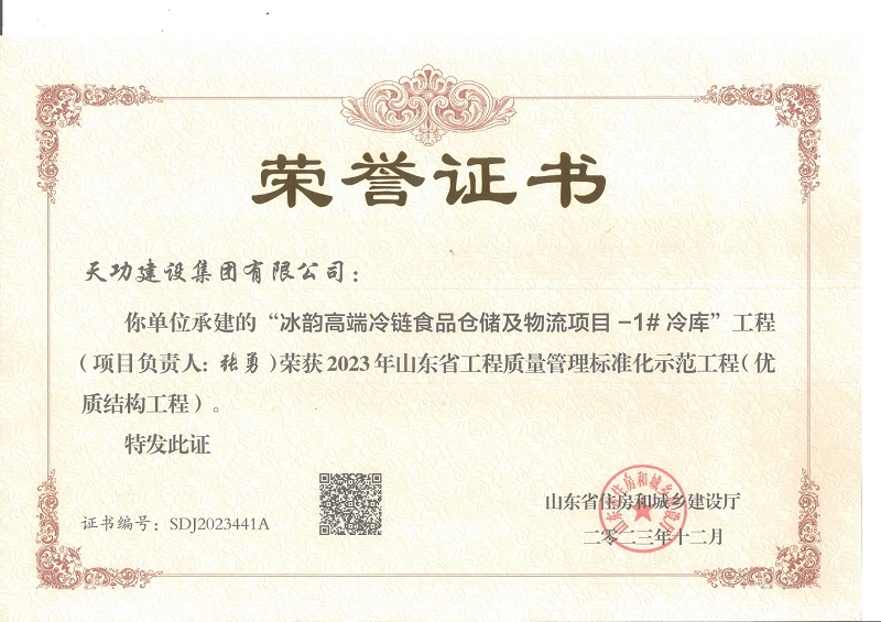 2023年山东省工程质量管理标准化示范工程(优质结构工程)-尊龙凯时人生就搏建设集团有限公司官网